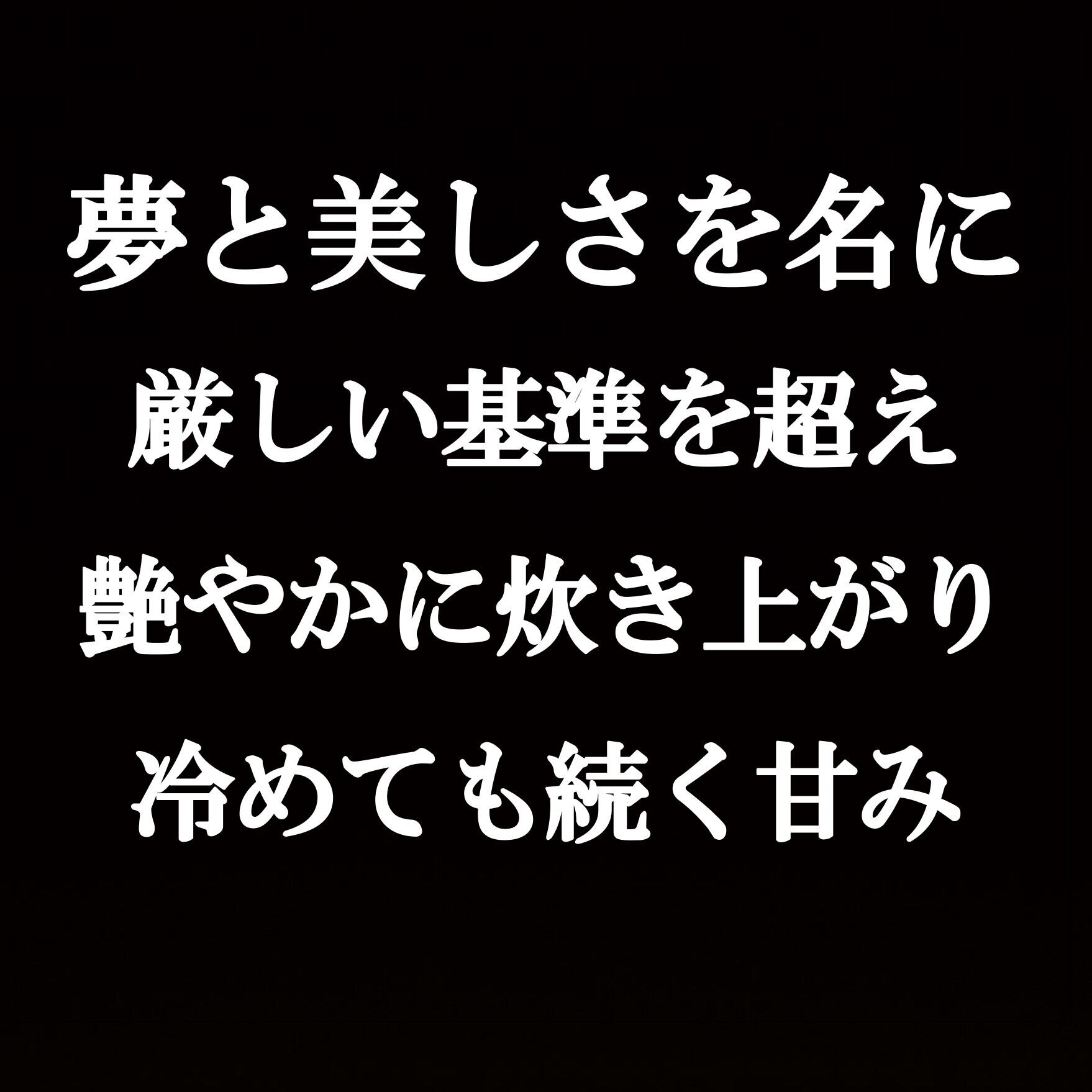 炊き上がりはつややかで、美しい輝きを放ち、噛むほどに甘みが広がるのが特長です。