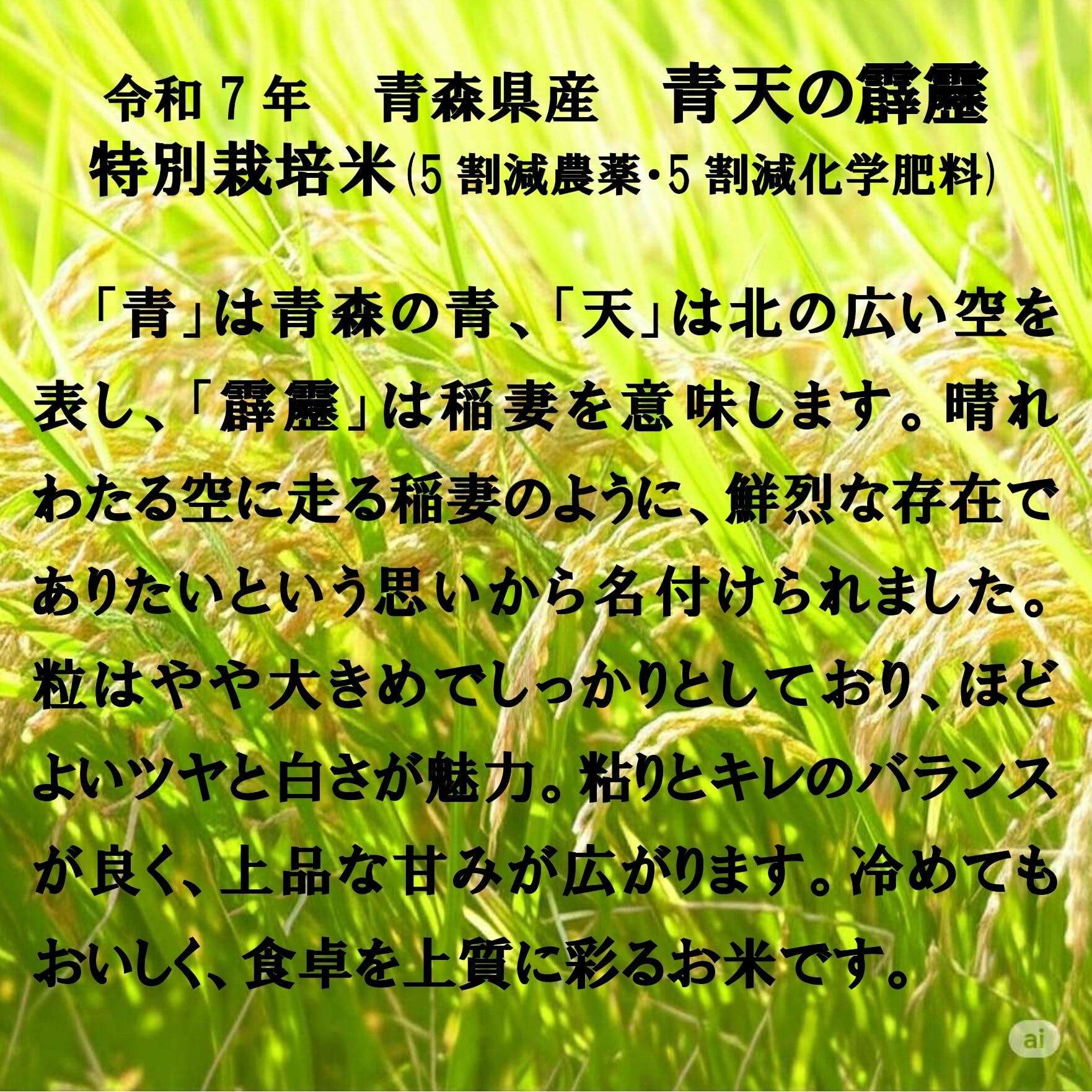 ◎新米 令和7年 青森県産 特別栽培米(5割減農薬-5割減化学肥料) 青天の霹靂◎