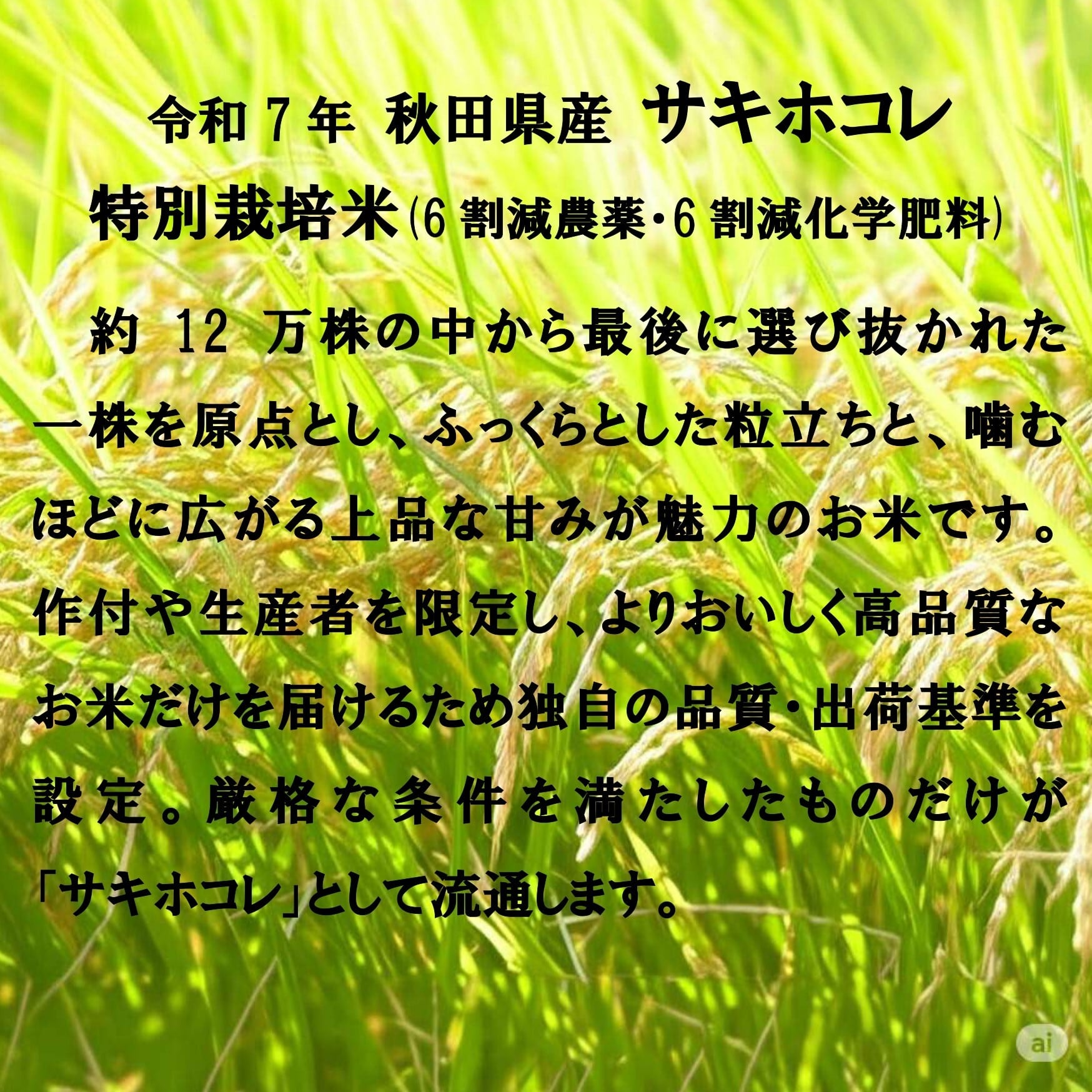◎新米 令和7年 秋田県産 特別栽培米(6割減農薬-6割減化学肥料) サキホコレ◎